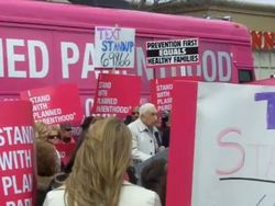 U.S. Senator Frank Lautenberg (D-NJ) stood with, and was applauded by, Planned Parenthood supporters and state lawmakers and said, "They [Tea Party Republicans and the majority of Americans who don't want their tax dollars funding Planned Parenthood] don't deserve the freedoms in the Constitution, but we'll give it to them anyway." (produched by Maria C. Rizzuto, Marie Tasy)