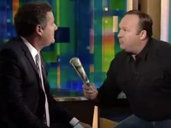 JONES: Why did you get fired from the Daily Mirror for putting out fake stories? You're a hatchet man of the New World Order. You're a hatchet man! And I'm going to say this here, you think you're a tough guy? Have me back with a boxing ring and I'll wear red, white, and blue, and you'll wear your Jolly Roger.