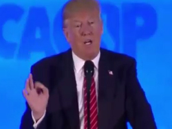 Donald Trump addressed the California state Republican Party convention Friday afternoon after running serpentine from protesters who blocked the roads and entrances to the event of the venue in Burlingame.