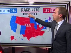 CHUCK TODD: This is our new battleground map. As you see we still have her over 270. So we're saying here -- so the most important thing to know about this map is right now this is where we see the battleground, which means that if you watch Donald Trump's numbers here, he can win Florida, he can win North Carolina and he can win Ohio and still be short. That's important.
