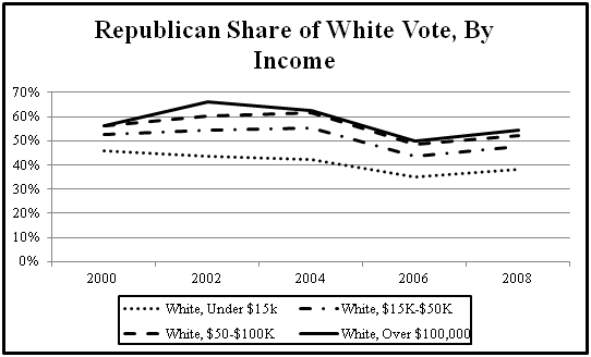 This is the Hispanic vote according to exit polls broken down by income. Here is what the same chart looks like for whites: