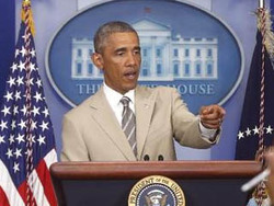 PRESIDENT BARACK OBAMA: I have consulted with Congress throughout this process. I am confident that as commander in chief I have the authority to engage in the acts we are conducting currently. As our strategy develops, we will continue to consult with Congress, and it will be important for Congress to weigh in, for our consultations with Congress continue to develop so the American people are part of the debate.