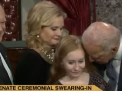 At her father's swearing-in ceremony, a visibly uncomfortable senator's daughter pulls away from the vice president after he grabs her arms, whispers something into her ear and attempts to kiss her on the cheek around 90 seconds into this video.