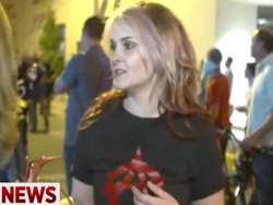 REPORTER: I have to point out you're wearing an "anarchy" shirt. Critics have said these protester are coming here only to disrupt and not to get a message across. How do you respond to that criticism criticism. Did you come here to disrupt?