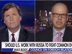 Tucker Carlson in a heated argument with Council on Foreign Relations' Max Boot on the threat from Russia and how U.S. should handle relations with the country when it comes to fighting ISIS in Syria. This follows Carlson's exchange with Ret. Lt. Col. Ralph Peters who likened the FOX News host to Charles Lindbergh. of From Wednesday's Tucker Carlson Tonight, transcript via FOX News Channe: